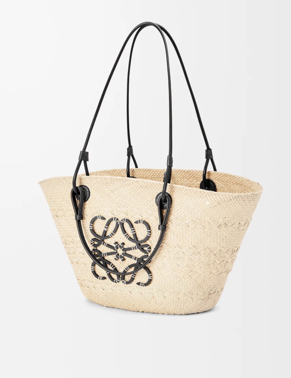 De Loewe Anagram Basket tas is de ultieme zomertas voor alle gelegenheden. Perfect voor als je op zoek bent naar een rieten designer strandtas die zowel trendy als praktisch is. De Loewe anagram basket tas is handgemaakt in Spanje van natuurlijk raffia en afgewerkt met luxe zwarte kalfsleren details. Het herkenbare Loewe logo is op de voorzijde geborduurd – een subtiele, maar stijlvolle knipoog naar het Spaanse modehuis.