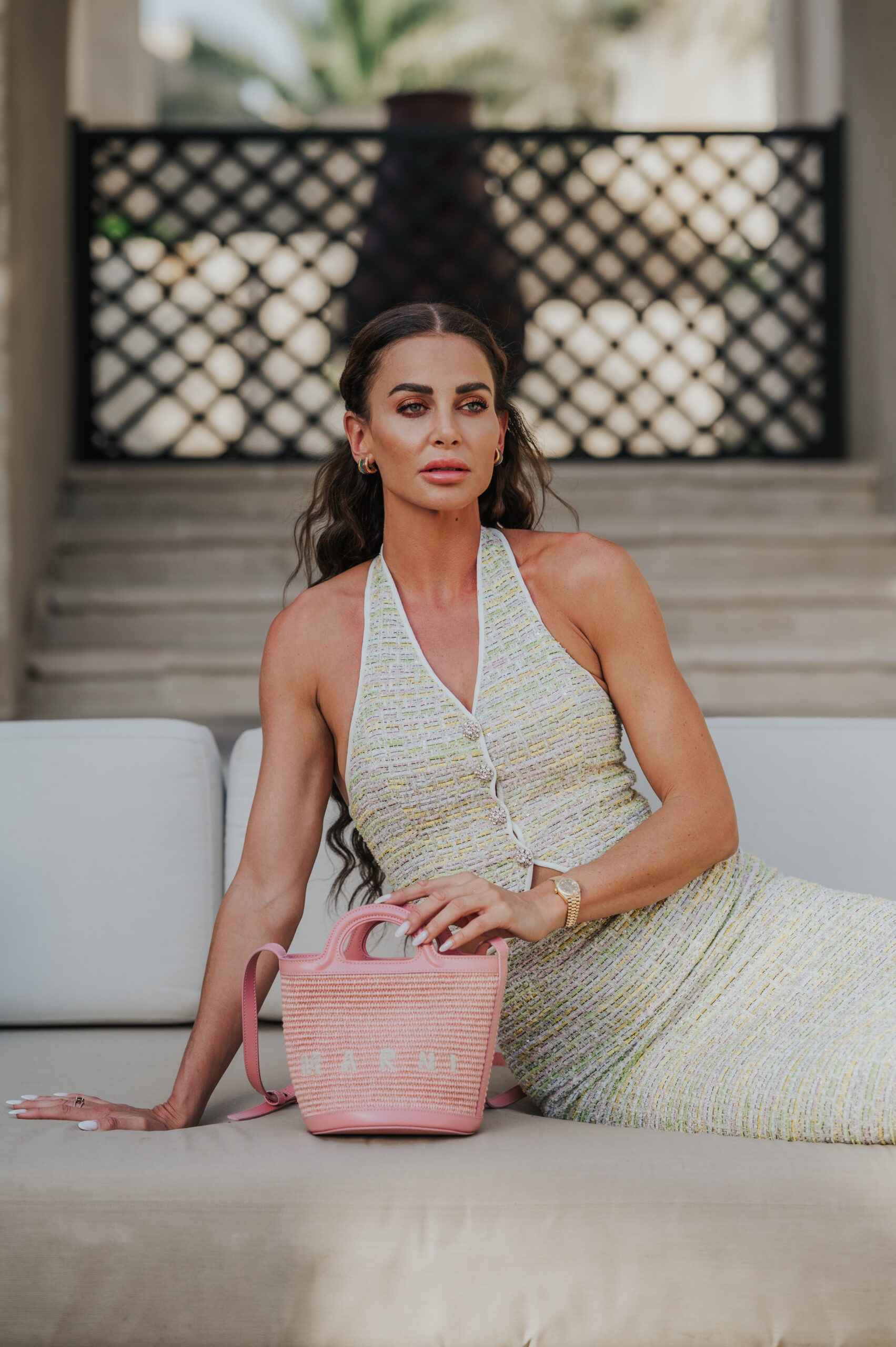 Wat een heerlijke zomerse tas is de Marni Tropicalia Mini bag in zachtroze. Deze charmante handtas is handgeweven van raffia met luxueuze lederen accenten en heeft het iconische MARNI logo op de voorzijde. Je draagt deze Marni tropicalia mini tas crossbody met het schouderhengsel. Het is een veelzijdige tas, perfect voor een brunch met vriendinnen, een dagje shoppen of een zonnige getaway.