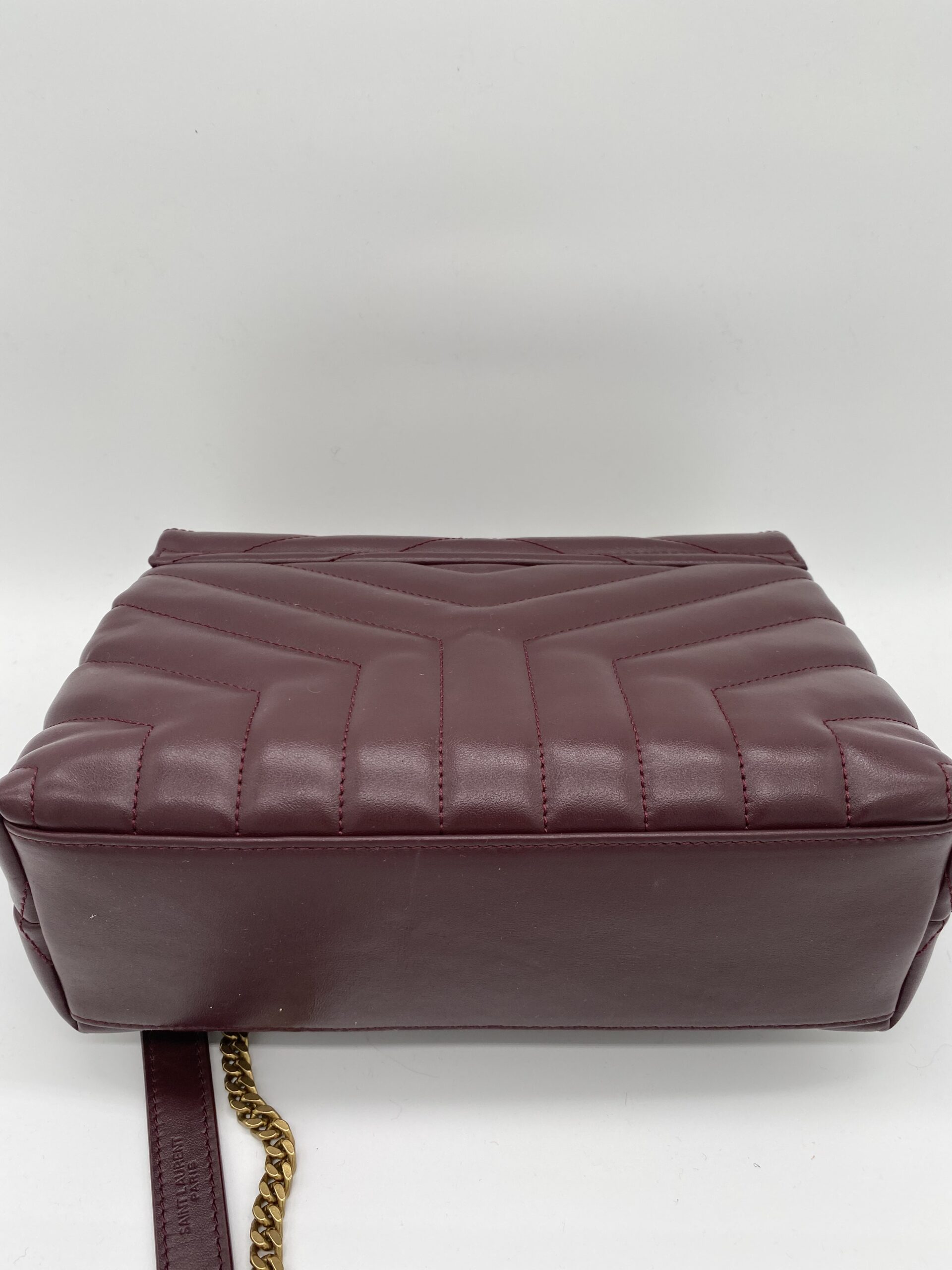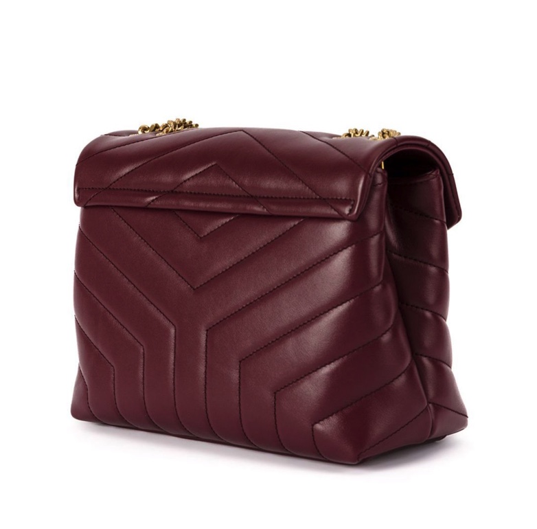 Saint Laurent Loulou matelasse quilted tas in bordeauxrood leer, in het small formaat. Een echte klassieker met het YSL logo in goud metaal. De Saint Laurent Loulou tas heeft een crossbody strap met leer en metaal en kan enkel of dubbel gedragen worden. De YSL Loulou is gemaakt van het mooiste kalfsleer en de dieprode kleur geeft elke outfit wat extra. Je huurt de Saint Laurent Loulou al vanaf 119 euro per maand.
